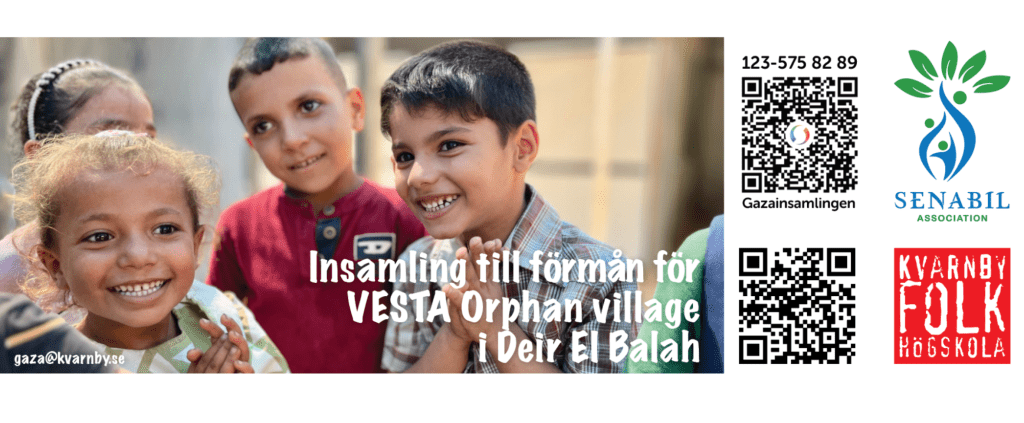 Ett normalt samhällsliv är omöjligt i Gaza. Israels krig mot Gazas civilbefolkning påverkar givetvis också Gazas barn. Hjälp oss att hjälpa barnen i Gaza. Vi samlar in pengar för att stötta Senabil Orphan Village – VESTA.